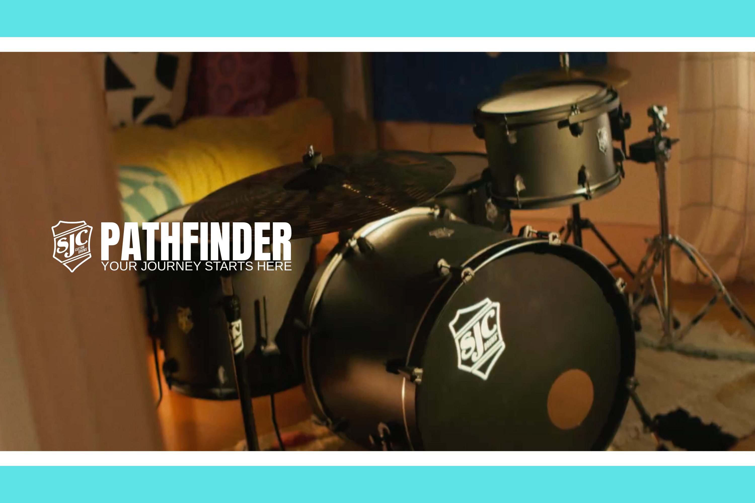 SJC Drummer Sage Weeber of Point North demonstrates the massive tones of the Pathfinder Shell Pack paired with the Alpha Hammered Brass Snare.